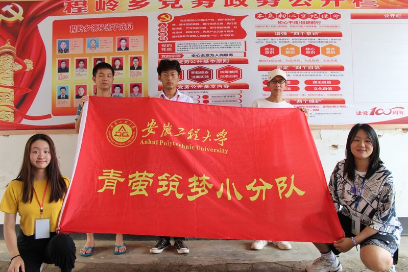 为了深入贯彻落实习近平总书记给第三届中国“互联网+”大学生创新创业大赛“青年红色筑梦之旅”大学生回信重要精神,紧扣“建党百年”主题,大力弘扬跨越时空的伟大的井冈山精神,将红色教育、专业教育与创新创业教育相结合,贯穿“四史”教育,全面推进课程思政,厚植学生“爱党爱国”情怀;聚焦革命老区,开展公益创业,引导师生服务乡村振兴,在全国范围内打造一堂主题鲜明的思政大课、实践大课。9999js金沙老品牌青萤筑梦小分队全体成员于7月2日抵达了大别山革命老区——安徽省安庆市宿松县程岭乡开展暑期社会实践活动。
