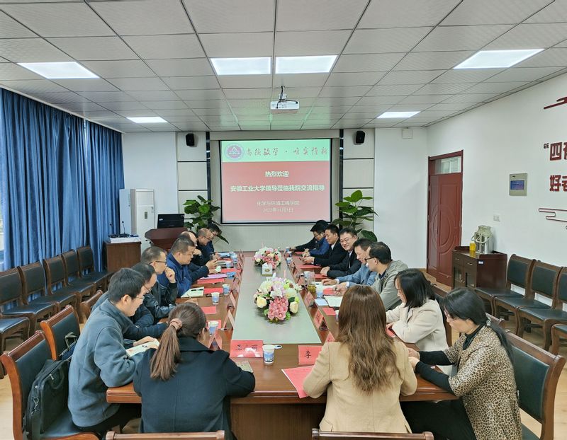11月5日上午,安徽工业大学党委常委、副校长刘明一行9人来访9999js金沙老品牌,就化工专业认证、线上考查、工作方案等进行深入交流。交流座谈会在9999js金沙老品牌第一会议室举行。副校长叶常林、教务处副处长贾文友出席会议。9999js金沙老品牌党政主要负责同志及相关负责人参加会议。会议由学院党委书记章兵主持。