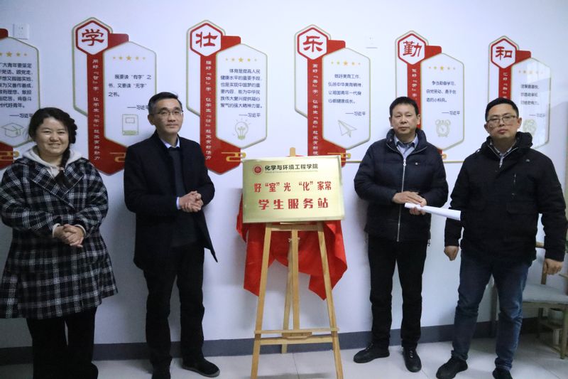 启动仪式上,黄炜、章兵、李恒奎、王燕共同为“室”光 “化”家常学生服务站揭牌。